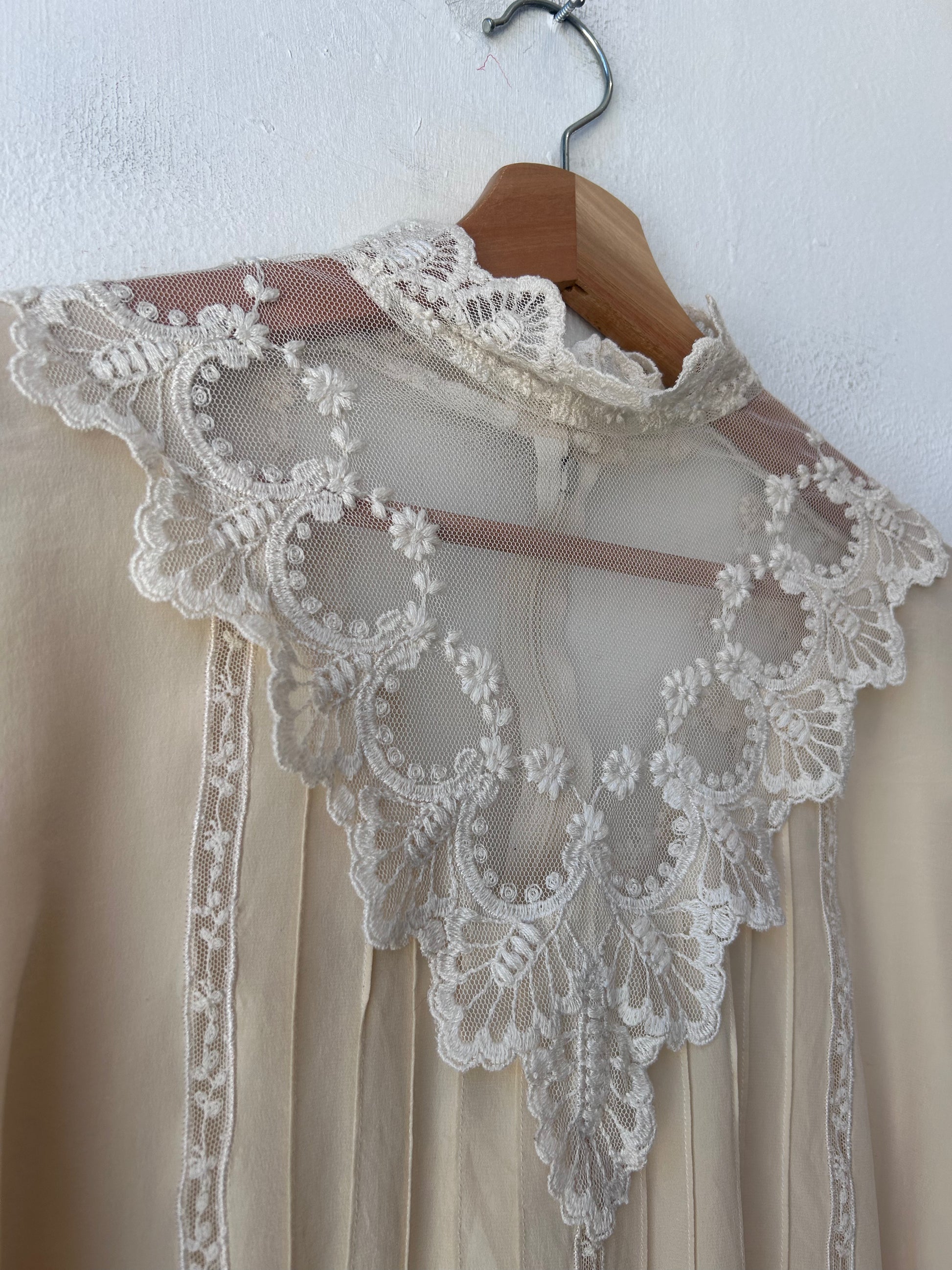 80's White Lace Long Sleeve Blouse