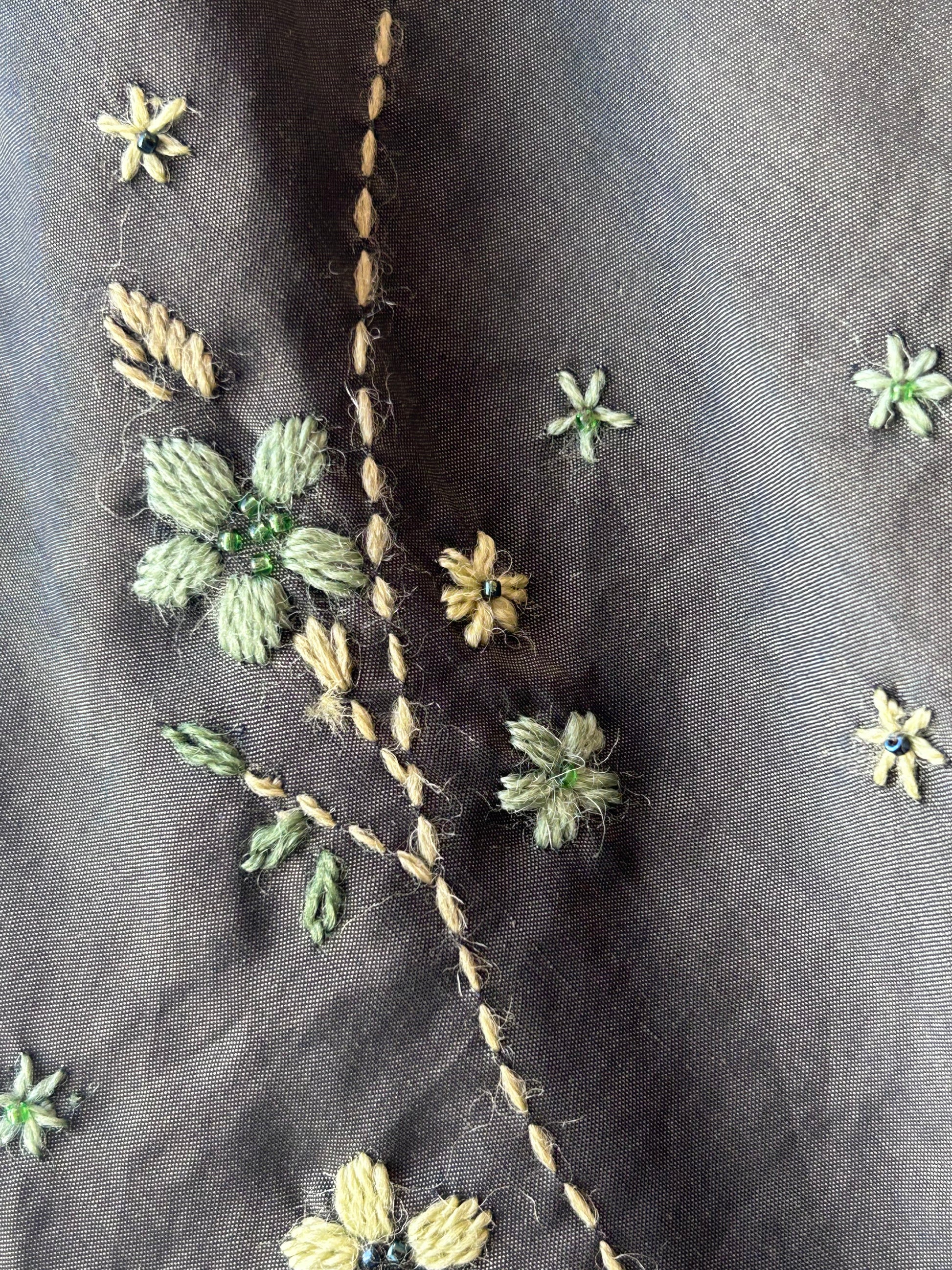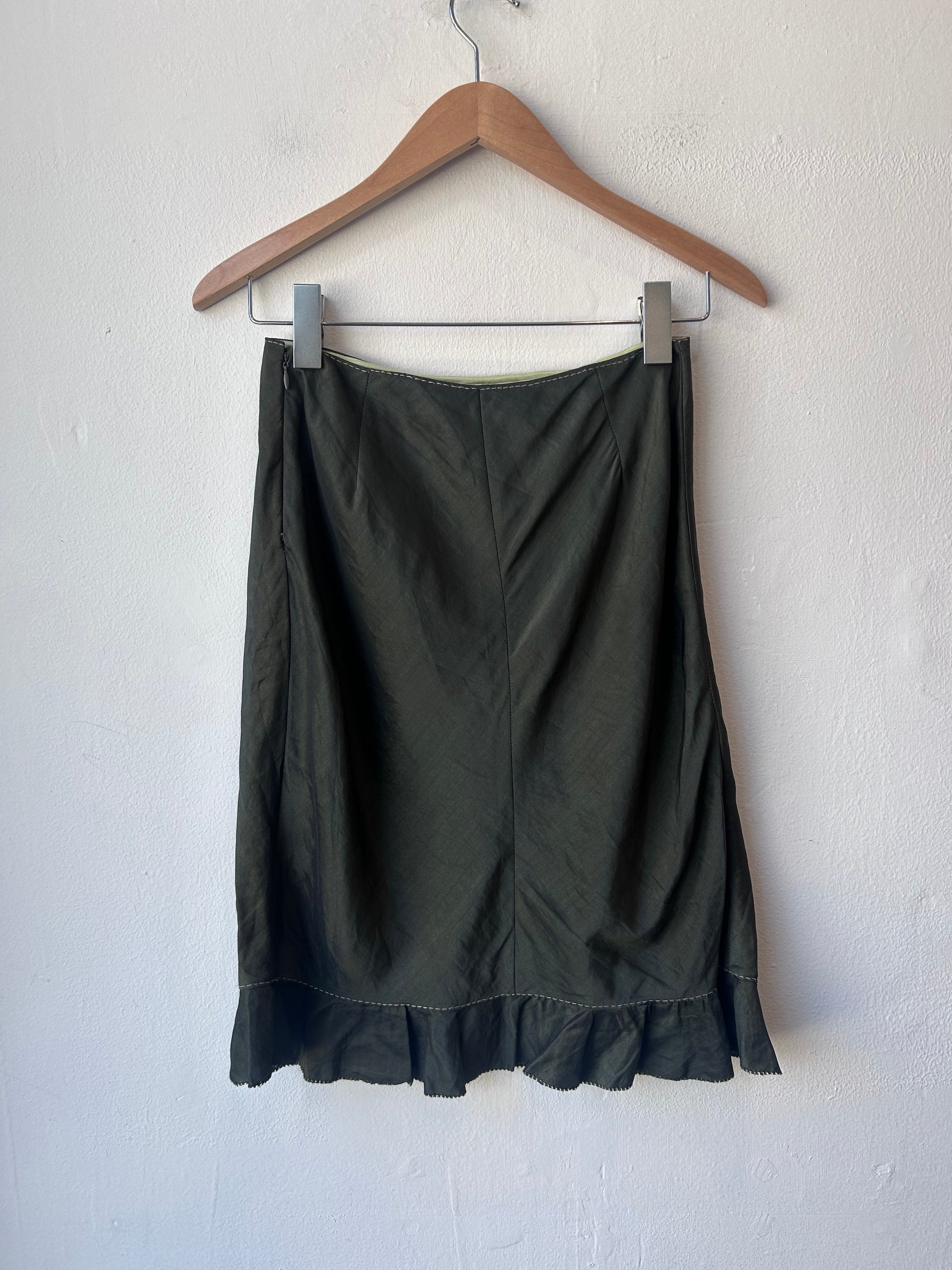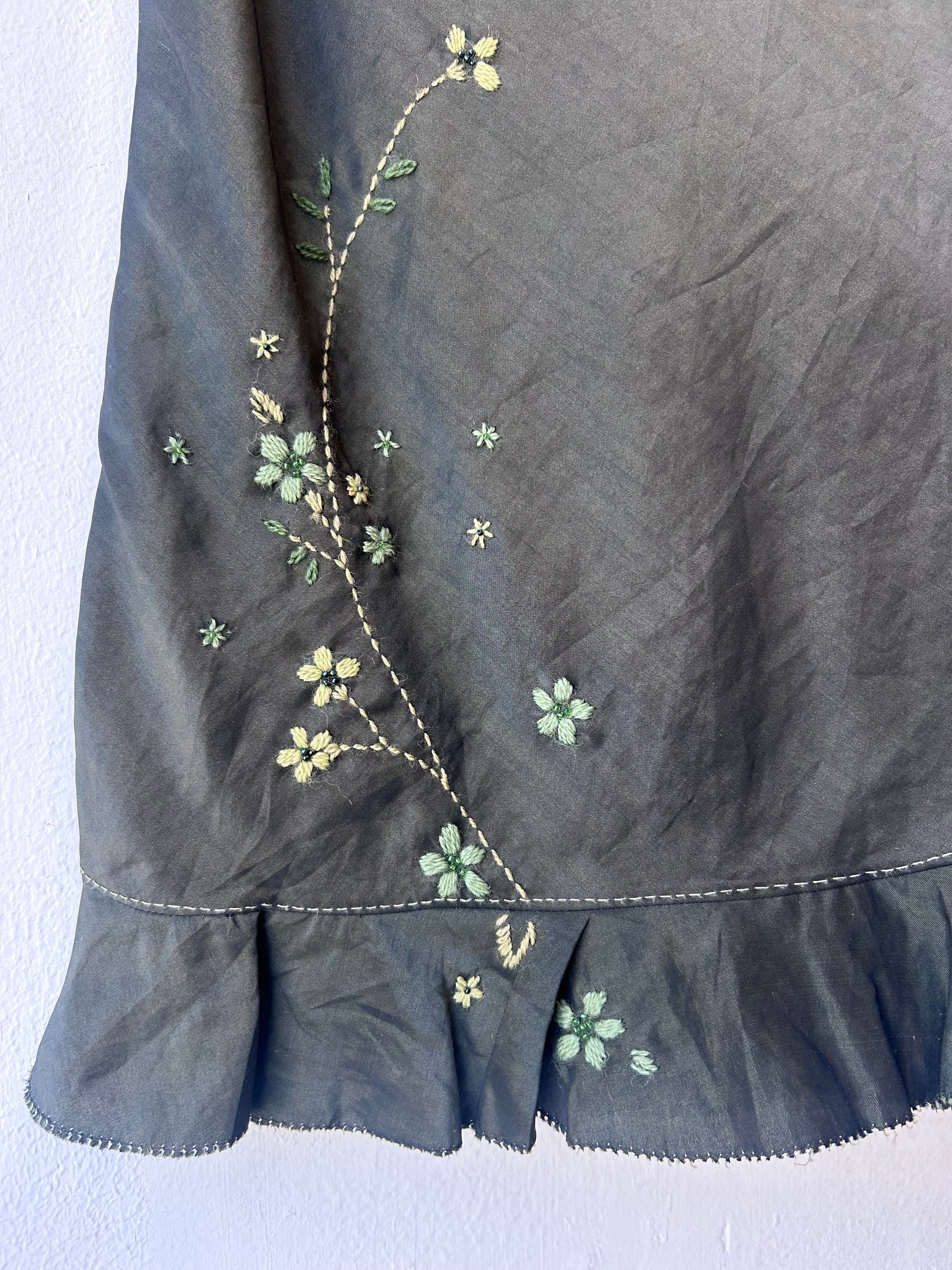 Y2K Olive Floral Embroidered Skirt 25"